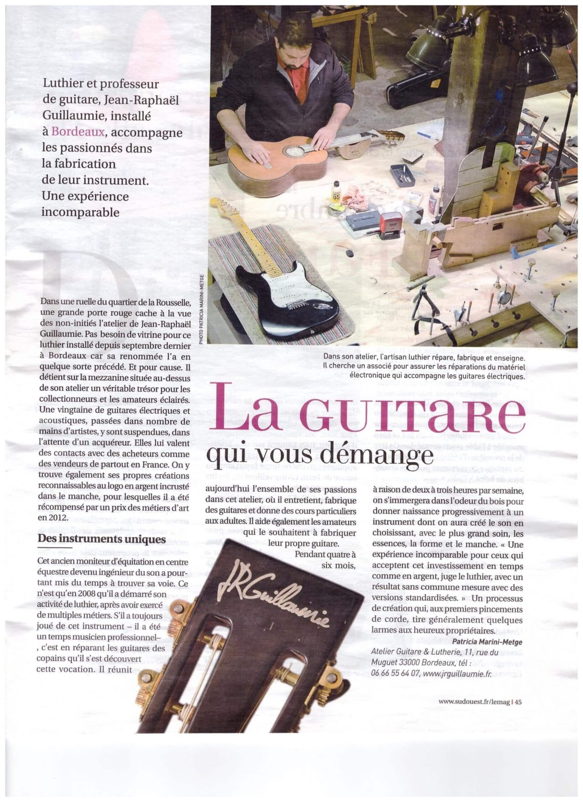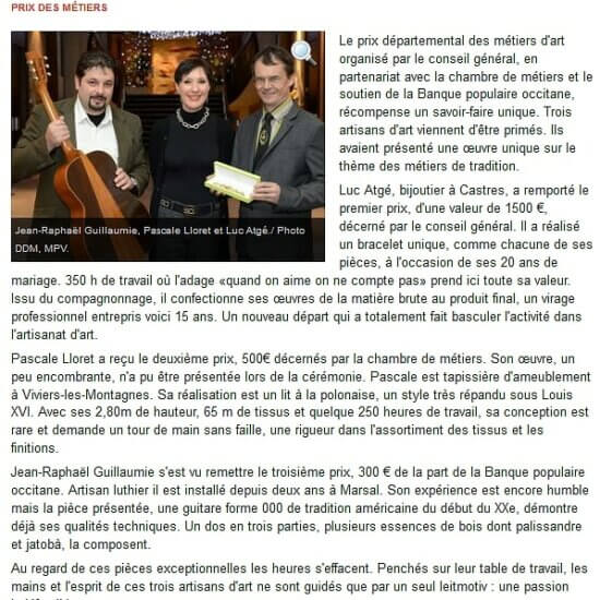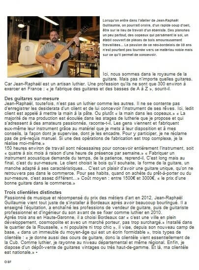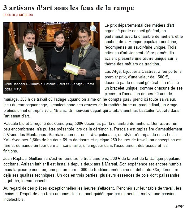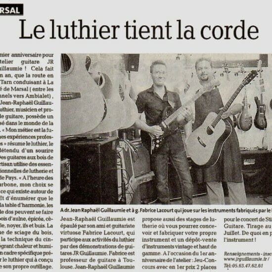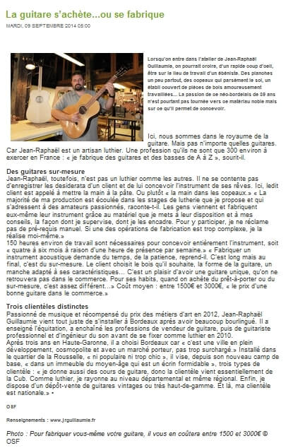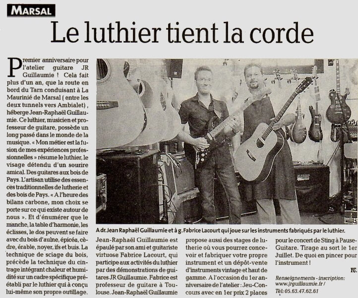 Voici une sélection de vidéos et d'articles de presse concernant mes activités de luthier. Vous y trouverez des reportages TV, coupures de presses ainsi que des vidéos réalisés depuis la création de mon activité de luthier en 2011.
