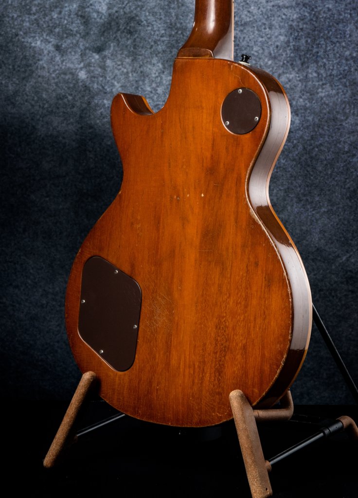 Etat vintage pour cette guitare avec un MOJO terrible !! Le vernis est largement faïencé, le chenillage en partie haute c’est de la coulure de transpiration… cette guitare a beaucoup joué, comme les bonnes guitares…et celle-ci ne déroge pas à la règle : Manche super confortable, prise en main immédiate, profil entre 50′ et 60’…