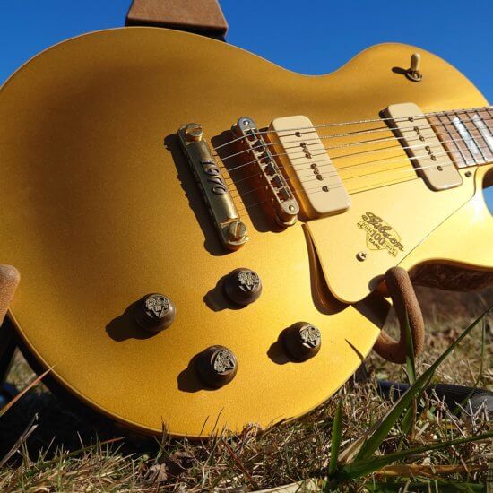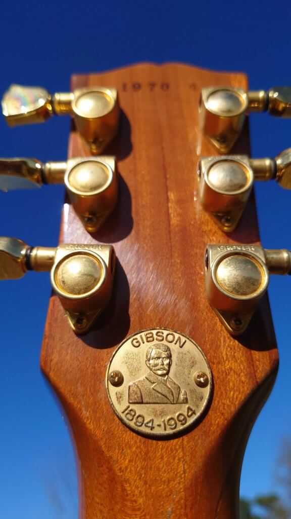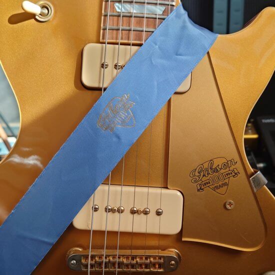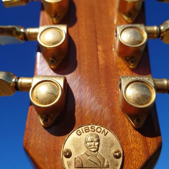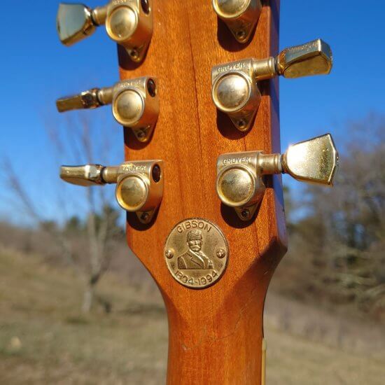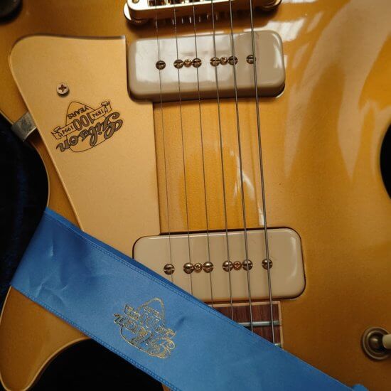 Electronique d’origine, touche palissandre, écusson 100th anniversary en 12è case, accastillage gold et finition ‘anniversary’ *11 pt. Diamond on the Gibson headstock logo. *5 Pt. Diamond detends on the 22K gold plated top hat knobs. *Diamond jeweled sterling silver *Centennial serial number (1894-1994). *Gold plated top hat knobs with 100 Year Anniversary logo. *Mother of Pearl inlays including 12th fret *100th Anniversary banner. *22K gold plated anniversary Orville Gibson coin embedded on the back of the headstock.