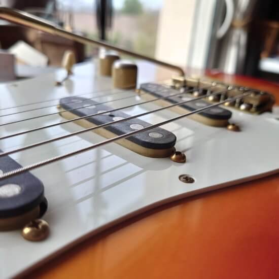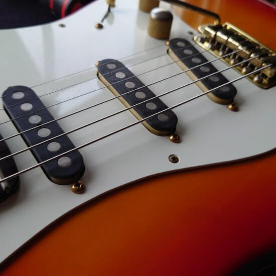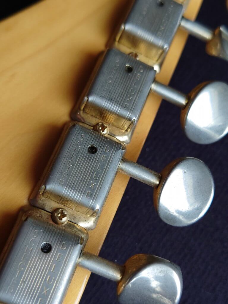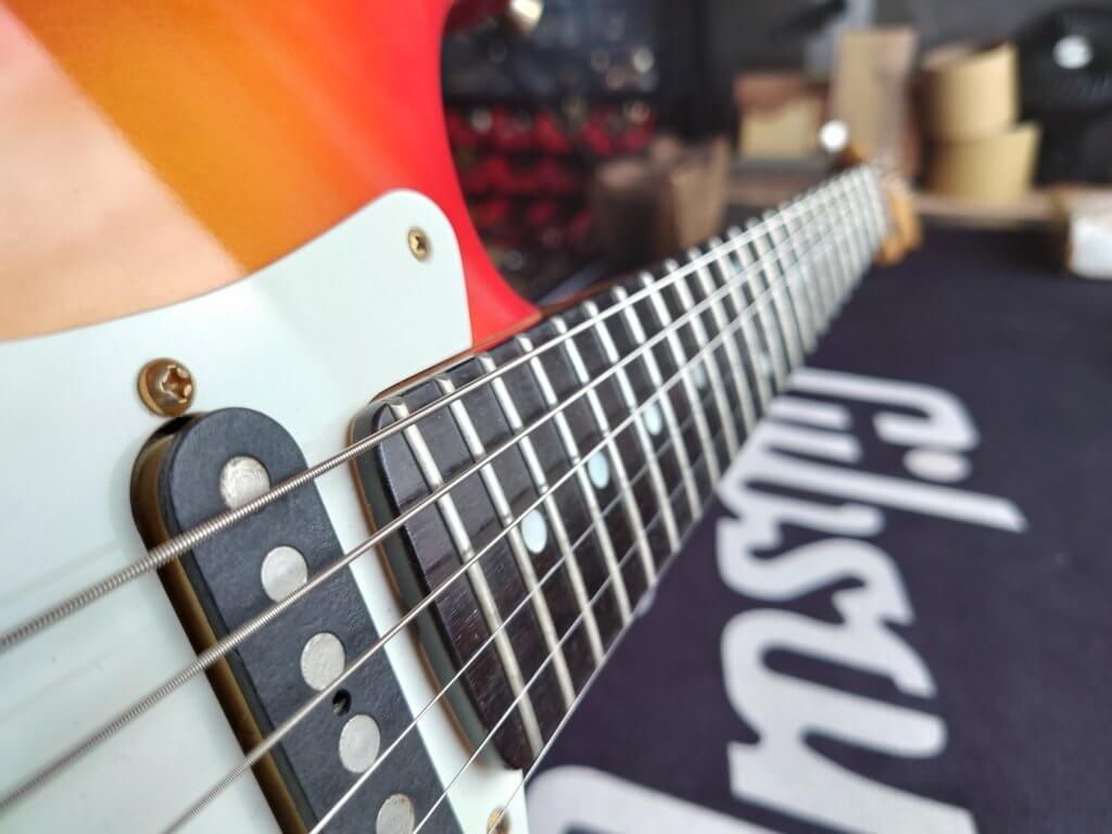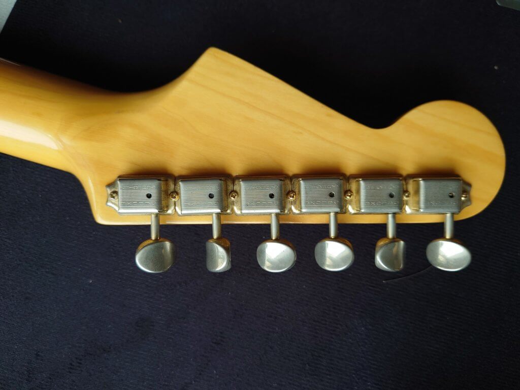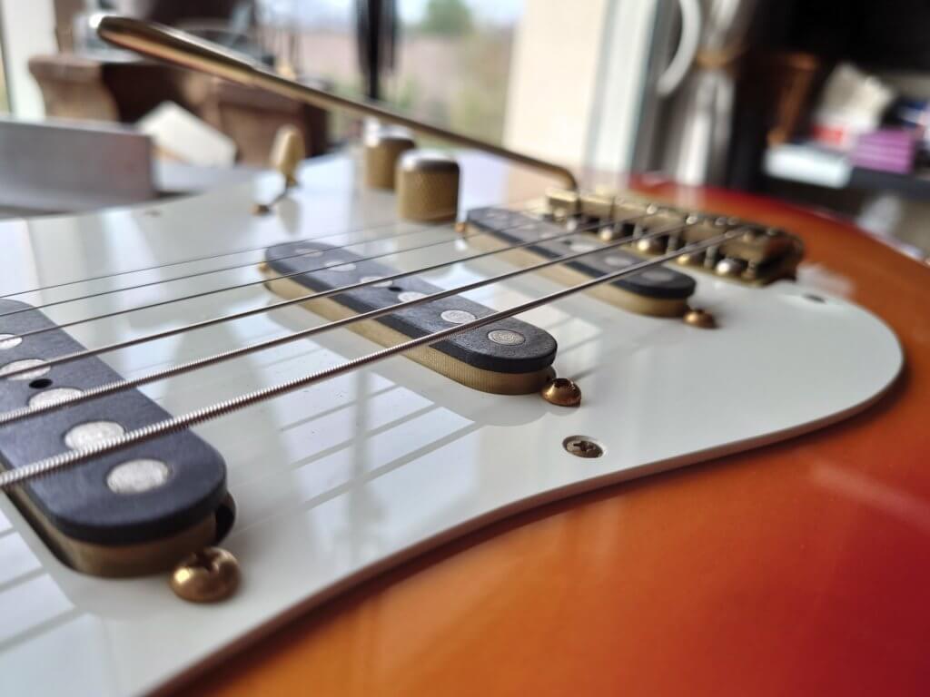 Magnifique et rare Schecter période transition 84/86 en Sienna Sunburst, excelle t état, très peu jouée… accastillage Schecter et bridge en laiton, électronique Schaller, touche ébène sublime. Une des toutes premières de l’époque Dallas Texas qui empruntait donc l’accastillage laiton des Dream Machine des 70’s.